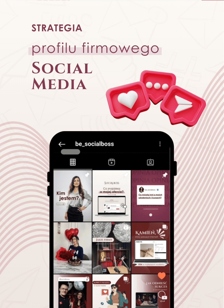 – Kompleksową strategię kampanii reklamowej dla Twojego profilu firmowego na wybranym portalu (Facebook, Instagram lub LinkedIn)